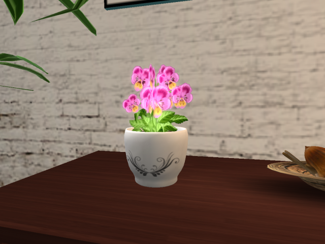 カフェの週替わりパンジーポットの入れ替えをいたしました。